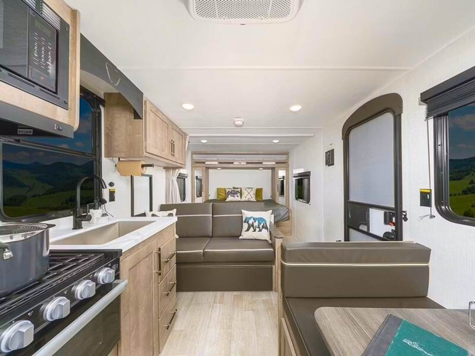 For families traveling with gear, this travel trailer with tons of storage offers more space than most entry-level bunkhouse travel trailers.