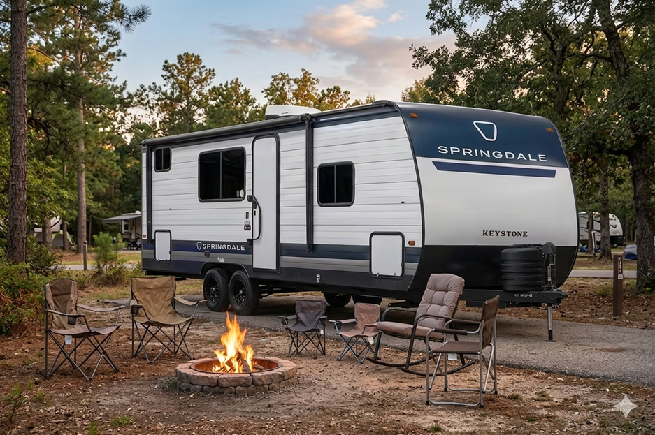 The Keystone Springdale 2300BH travel trailer stands out as an affordable, lightweight RV in Canada that doesn’t cut corners. With its smart layout, innovative storage, and family-friendly sleeping capacity, it’s ideal for: