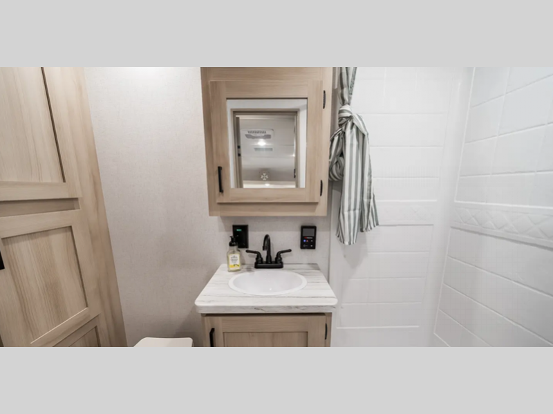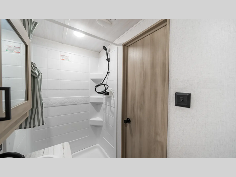 Each model includes many at-home comforts, including seamless countertops with no T-mold, full bath and kitchen amenities, plus plenty of storage space for your belongings. There is an outside shower with hot and cold water, a power awning with an LED light, and a battery disconnect. Solar prep, ladder prep, and WiFi prep give you the ability to customize your trailer even more!