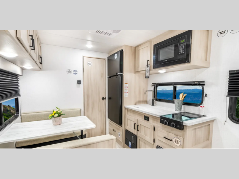 Sleeps 3 Length 21 ft Ext Width 8 ft Ext Height 10 ft 3 in Int Height 6 ft 9 in Hitch Weight 340 lbs Dry Weight 3518 lbs Cargo Capacity 1222 lbs Fresh Water Capacity 40 gals Grey Water Capacity 30 gals Black Water Capacity 30 gals Available Beds Queen Refrigerator Type 12V Refrigerator Size 10 cu ft Cooktop Burners 2 Shower Size 24" x 40" Number of Awnings 1 Awning Info 12' Power w/LED Light Axle Count 1 Shower Type Walk-In Shower Similar Floorplans