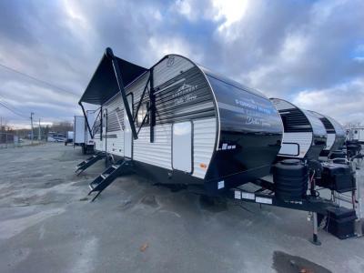 Sleeps 4 Slides 2 Length 31 ft 10 in Ext Width 8 ft Int Height 6 ft 9 in Hitch Weight 780 lbs Dry Weight 7243 lbs Cargo Capacity 2337 lbs Fresh Water Capacity 40 gals Grey Water Capacity 90 gals Black Water Capacity 30 gals Furnace BTU 35000 btu Available Beds King Refrigerator Type 12V Refrigerator Size 10.7 cu ft Cooktop Burners 3 Shower Size 24" x 40" Number of Awnings 1 Water Heater Type Tankless AC BTU 15000 btu Awning Info 20' Electric with LED Lights Axle Count 2 Washer/Dryer Available Yes Shower Type Standard Electrical Service 50 amp Similar Travel Trailer Floorplans