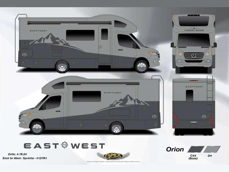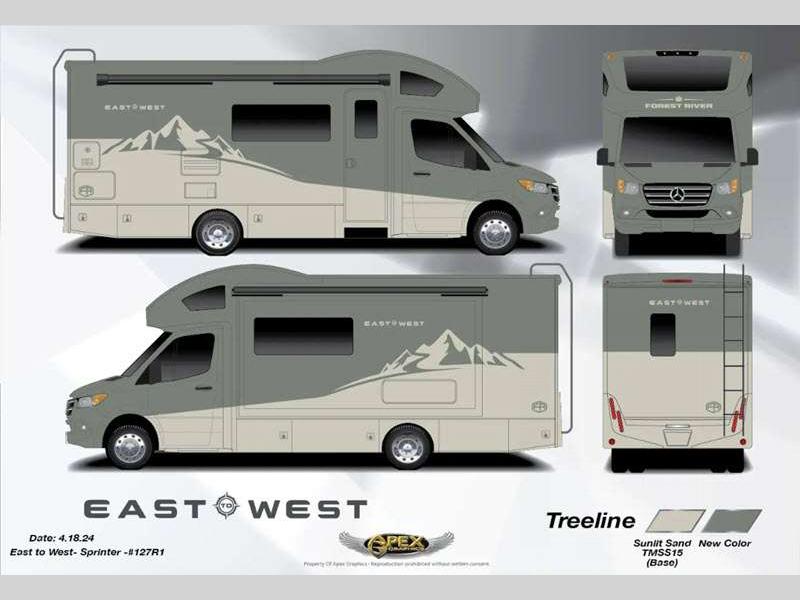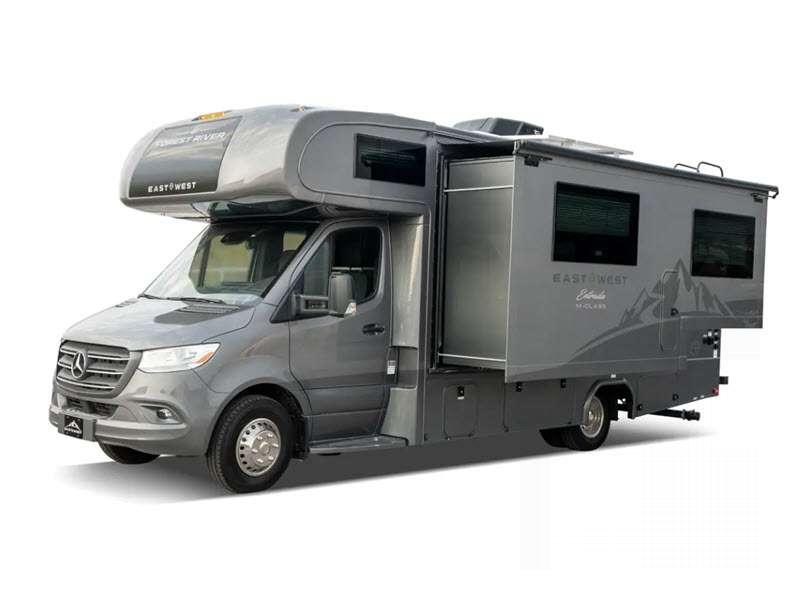 Head to far off adventures in an Entrada M-Class Class C diesel motorhome by EAST TO WEST! The Mercedes Sprinter 3500 chassis provides a durable foundation and the 3.0L turbo diesel engine has the power to get you where you're going, all without breaking the bank!