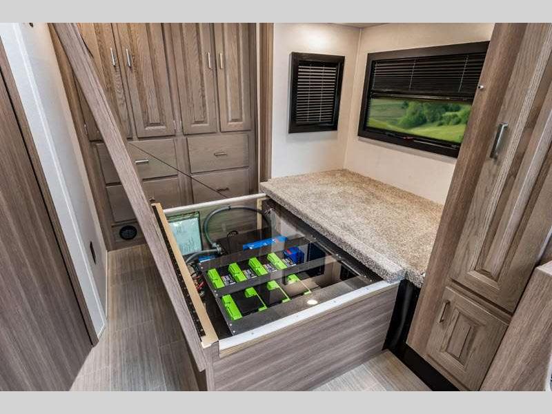 • eGen System (24FM): Replaces FlexPower Generator, (3) 200 Watt Monocrystalline Solar Panels, Premium Victron components including: 3,000 Watt MultiPlus II Inverter-Charger, 50amp MPPT SmartSolar Charge Controller, Cerbo GX, Lynx Distributor, and Orion DC-DC Charger, 960ah Lithium Batteries with Vertical Heat Conduction and CanBus connections, Easily expandable to 1,440ah battery capacity, and Arco-Zeus second High-Output alternator, charges at 275amps/Hwy, 150amps/Idle