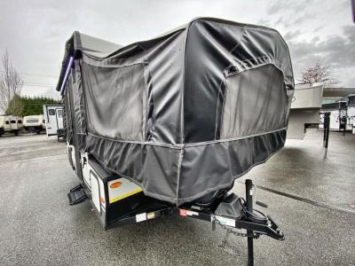 The Freedom Series will elevate your camping experience providing you a quality camper to maximize your tent camper investment. You will love the convenience of the powered roof lift for easy set-up and four stabilizer jacks for in camp stability. You will also enjoy a MaxxAir fan for ventilation included in the Core Convenience Package, along with an awning with LED lighting, a 12V refrigerator with a 100W roof solar panel plus more!