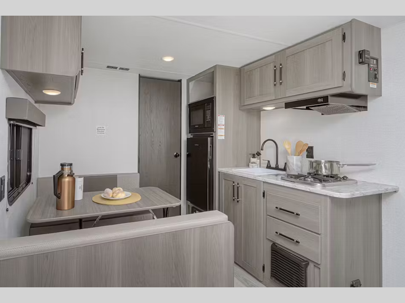 Sleeps 3 Slides 1 Length 20 ft 11 in Ext Height 10 ft 2 in Interior Color Pewter Hitch Weight 435 lbs Dry Weight 3476 lbs Cargo Capacity 959 lbs Fresh Water Capacity 21 gals Grey Water Capacity 30 gals Black Water Capacity 32 gals Tire Size ST205/75R14D Furnace BTU 20000 btu Available Beds Queen Refrigerator Type 12V Refrigerator Size 7.7 cu ft Cooktop Burners 2 Number of Awnings 1 LP Tank Capacity 20 lbs Water Heater Type Tankless Awning Info 10' Power Axle Count 1 Number of LP Tanks 1 Shower Type Standard Similar Floorplans