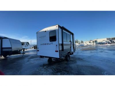 With any Hideout Mini travel trailer by Keystone, you will enjoy lightweight towing thanks to their single axle! The XL tinted safety glass windows are ultra durable, and the power awning will provide protection from the sun as you relax in your camp chairs outside. Each model includes blackout night shades, LED lighting, plus many more interior comforts. There is also a 20K BTU furnace to keep you comfortable, plus a tankless water heater for endless hot showers!