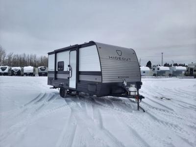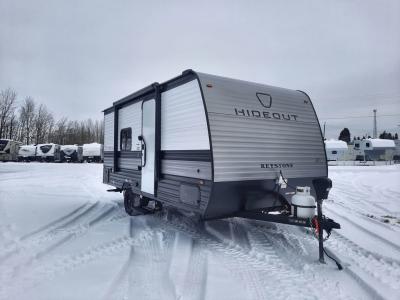 With any Hideout Mini travel trailer by Keystone, you will enjoy lightweight towing thanks to their single axle! The XL tinted safety glass windows are ultra durable, and the power awning will provide protection from the sun as you relax in your camp chairs outside. Each model includes blackout night shades, LED lighting, plus many more interior comforts. There is also a 20K BTU furnace to keep you comfortable, plus a tankless water heater for endless hot showers!