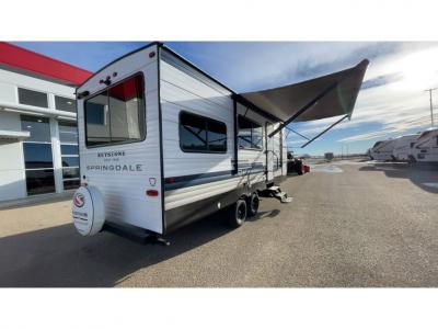 The Springdale Classic travel trailers by Keystone will provide you and your family many great outdoor experiences and it will also be kind to your pocketbook. Each one is constructed with a walkable roof and an I-beam frame with stamped steel cross-members and outriggers for added strength. There are also heavy-duty stabilizer jacks and power tongue jacks outside, along with an XL entry assist handle for added convenience. Each travel trailer includes LED lighting, bedside outlets, and blackout night shades inside that will provide you with more privacy at night.