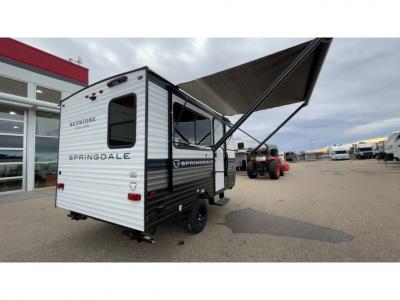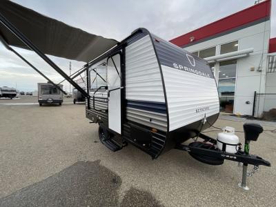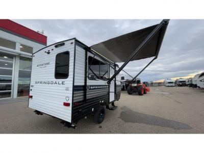 With any Springdale Mini travel trailer by Keystone, you will enjoy lightweight towing thanks to their single axle! The XL tinted safety glass windows are ultra durable, and the power awning will provide protection from the sun as you relax in your camp chairs outside. Each model includes blackout night shades, LED lighting, plus many more interior comforts. There is also a 20K BTU furnace to keep you comfortable, plus a tankless water heater for endless hot showers!