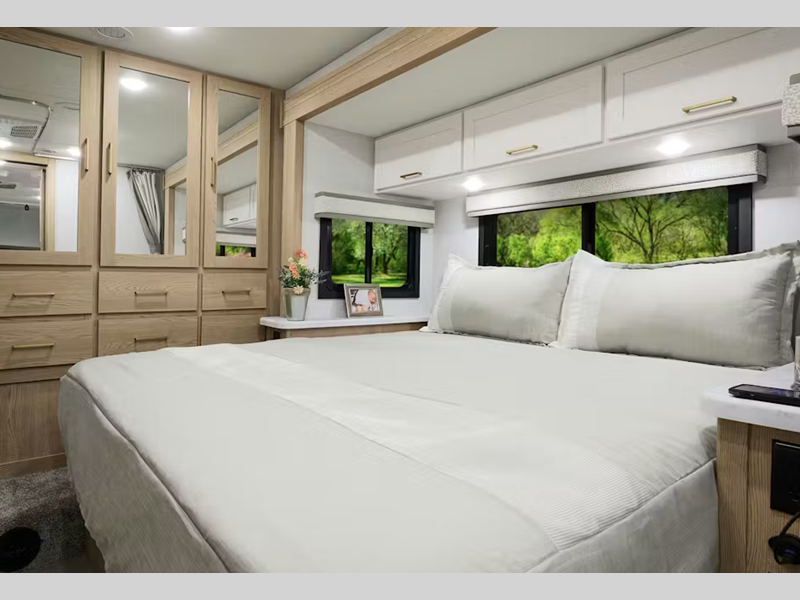 - Cab-Over Sleeping Area with Cup Holders & Telescoping Bunk Ladder