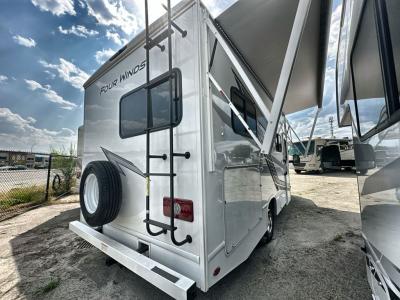 With any Four Winds ESpec Class C gas motorhome by Thor Motor Coach, you will find convenient amenities, a modern interior, and a reliable Ford E-Series chassis, with an optional Chevy chassis on select models to power your adventures. There is welded tubular aluminum roof and sidewall cage construction, a one-piece fiberglass front cap, and a one-piece domed roof membrane for added strength. Residential vinyl flooring will be easy to keep clean, and you'll love the sleek look of the Hampton Collection, two-toned cabinets. These motorhomes also include a 50 state 4.0 kW dual gas/LP generator and a 30-amp shoreline power cord to keep you going, along with a tankless water heater and 13,500 roof front A/C to ensure your comfort!
