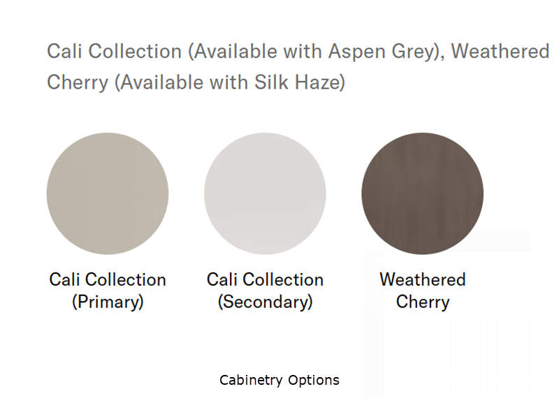 - Cali Collection, Two Toned Cabinet Doors California White Uppers/ Coastline Grey Lowers with Gold Hardware (Optional)